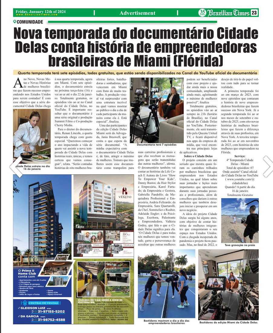 Na Mídia Reconhecimento e muito Trabalho O reconhecimento foi o fruto de muita dedicação e responsabilidade com os nossos clientes. Jornal: Brazilian Times Gabriella Pandolfo
